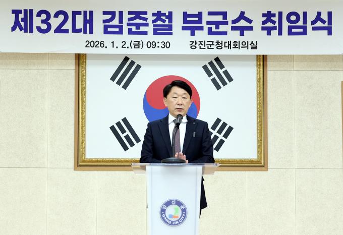 [½Ã»çÁ¾ÇսŹ® = ¿À½ÂÅà ±âÀÚ] °­Áø±º Á¦32´ë ±èÁØÃ¶ ½ÅÀÓ ºÎ±º¼ö°¡ °ø½Ä ÃëÀÓÇß´Ù. ÃëÀÓ½ÄÀº Áö³­ 2ÀÏ °­Áø±ºÃ» ´ëȸÀǽǿ¡¼­ ±ºÃ» °£ºÎ °ø¹«¿ø°ú Á÷¿øµéÀÌ Âü¼®ÇØ »õ·Ó°Ô ºÎÀÓÇÑ ºÎ±º¼ö¸¦ ȯ¿µÇß´Ù.