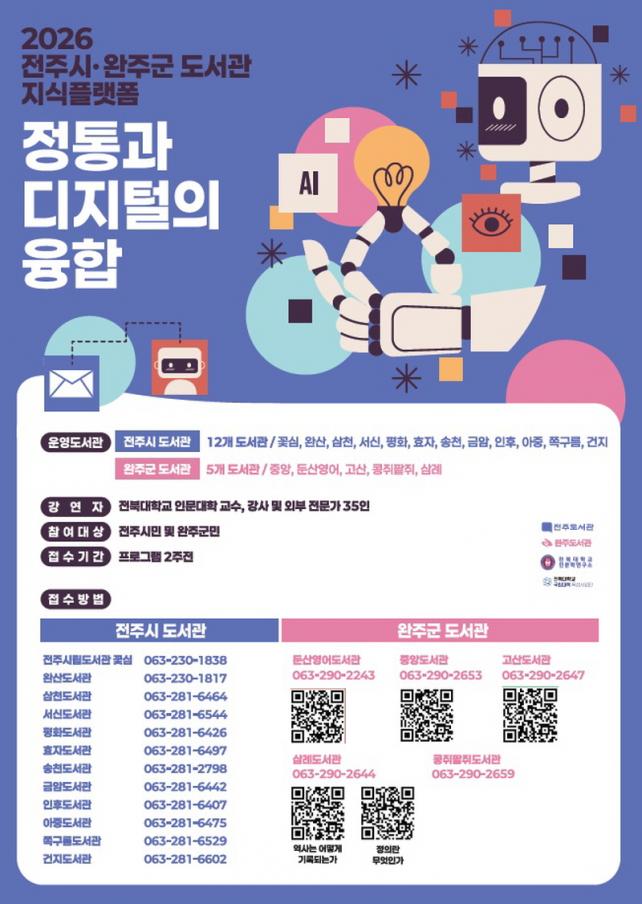 ÀüÁֽô Áö³ 8ÀϺÎÅÍ ¿À´Â 2¿ù 5ÀϱîÁö 12°³ ½Ã¸³µµ¼°ü¿¡¼ ÀüºÏ´ëÇб³¿Í ¿¬°èÇÑ ¡®ÀüÁֽà µµ¼°ü Áö½ÄÇ÷§Æû: Á¤Åë°ú µðÁöÅÐÀÇ À¶ÇÕ¡¯ ÇÁ·Î±×·¥À» ¿î¿µÇÑ´Ù°í 12ÀÏ ¹àÇû´Ù.