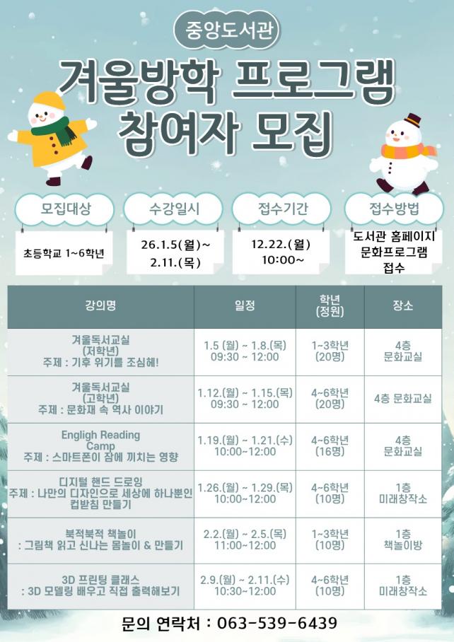 [½Ã»çÁ¾ÇսŹ® = ¿À½ÂÅà ±âÀÚ] Á¤À¾½Ã°¡ ±ä °Ü¿ï¹æÇÐÀ» ¸ÂÀº Áö¿ª ¾î¸°À̵éÀÌ Ã¥°ú ÇÔ²² ²ÞÀ» Ű¿ì°í ¾ËÂù ½Ã°£À» º¸³¾ ¼ö ÀÖµµ·Ï ´Ùä·Î¿î µ¶¼­ ¹®È­ ÇÁ·Î±×·¥À» ¸¶·ÃÇß´Ù. ½Ã´Â ¿À´Â 2¿ù Áß¼ø±îÁö ¡®°Ü¿ï¾Æ ÀÐÀÚ!¡¯¶ó´Â ÁÖÁ¦·Î Áß¾Óµµ¼­°ü, ±âÀûÀǵµ¼­°ü, ½ÅÅÂÀεµ¼­°ü µî 3°÷¿¡¼­ ÃʵîÇлýÀ» À§ÇÑ ¸ÂÃãÇü ÇÁ·Î±×·¥À» ¿î¿µÇÑ´Ù°í 13ÀÏ ¹àÇû´Ù.