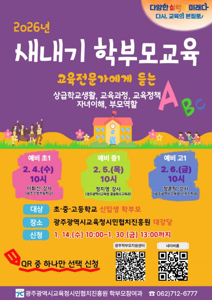 °¢ ±³À°¿¡´Â Çб³±Þº° Çкθð 100¸í¾¿, ÃÑ 300¸íÀÌ Âü¿©ÇÒ ¼ö ÀÖ´Ù. Âü¿© ½ÅûÀº ¿À´Â 30ÀÏ ¿ÀÈÄ 1½Ã±îÁö ±¤Áֽñ³À°Ã» ÇкθðÁö¿ø¼¾ÅÍ ´©¸®Áý(https://hakbumo.gen.go.kr/)¿¡¼ ¼±Âø¼øÀ¸·Î ¹Þ´Â´Ù.