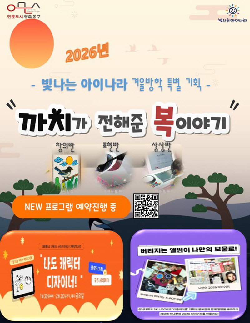 [½Ã»çÁ¾ÇսŹ® = ¿À½ÂÅà ±âÀÚ] ±¤ÁÖ µ¿±¸´Â °Ü¿ï¹æÇÐÀ» ¸Â¾Æ ±Ý³²ÁöÇϵµ»ó°¡ 2°ø±¸ ÀÏ¿ø¿¡ À§Ä¡ÇÑ ¾î¸°ÀÌ ¹®È­Ã¼Çè °ø°£ ¡®ºû³ª´Â ¾ÆÀ̳ª¶ó¡¯¿¡¼­ ¿À´Â 2¿ù±îÁö °Ü¿ï¹æÇРƯº°±âȹ ÇÁ·Î±×·¥À» ¿î¿µÇÑ´Ù°í ¹àÇû´Ù.