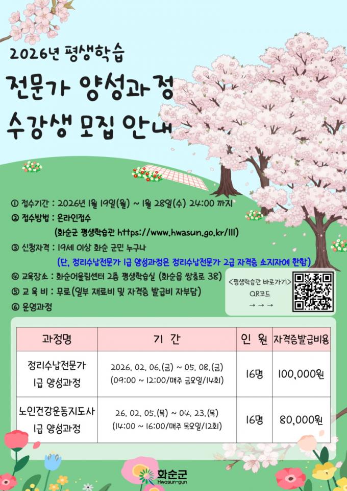 °úÁ¤º° ¸ðÁýÀοøÀº 16¸íÀÌ¸ç ¼ö° ½ÅûÀº ȼø±º Æò»ýÇнÀ°ü ȨÆäÀÌÁö(www.hwasun.go.kr/lll)¸¦ ÅëÇÑ ¿Â¶óÀÎ Á¢¼ö·Î ÁøÇàµÈ´Ù. ¼±Âø¼ø ¸ðÁý ¿Ï·á ÈÄ ÃÖÁ¾ ¼±Á¤ °á°ú¸¦ °³º° Å뺸ÇÒ ¿¹Á¤ÀÌ´Ù.