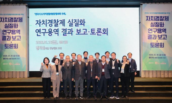Àü±¹½Ã¡¤µµÀÚÄ¡°æÂûÀ§¿øÀåÇùÀÇȸ´Â À̹ø ¿¬±¸¿ë¿ª °á°ú¸¦ ¹ÙÅÁÀ¸·Î ½Ã¡¤µµ °æÂûûÀ» ±¤¿ªÁö¹æÀÚÄ¡´Üü·Î À̰üÇÏ´Â ¡®¿ÏÀüÇÑ ÀÚÄ¡°æÂûÁ¦¡¯ µµÀÔÀ» À§ÇÑ ´ÜÀÏ °ÇÀǾÈÀ» äÅÃÇϰí, ¹üÁ¤ºÎ ÇùÀÇü ³íÀÇ °úÁ¤¿¡¼ ÇöÀå Áß½ÉÀÇ Á¦µµ ¼³°è°¡ ¹Ý¿µµÇµµ·Ï Àû±Ø ´ëÀÀÇÒ ¹æÄ§ÀÌ´Ù.
