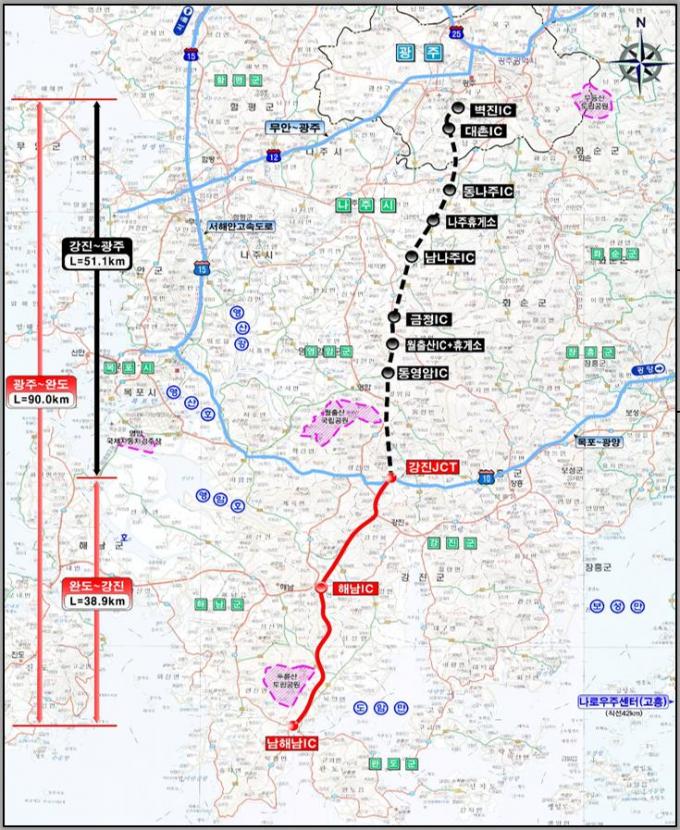 ¿ÃÇØ ¿Ï°øµÇ´Â ³ë¼±Àº ±¤ÁÖ±¤¿ª½Ã ¼±¸ º®Áøµ¿¿¡¼ Ãâ¹ßÇØ °Áø±º ¼ºÀü¸é¿¡¼ ³²Çذí¼Óµµ·Î¿Í ºÐ±âÁ¡(JCT)À¸·Î ¿¬°áµÉ ¿¹Á¤ÀÌ´Ù.