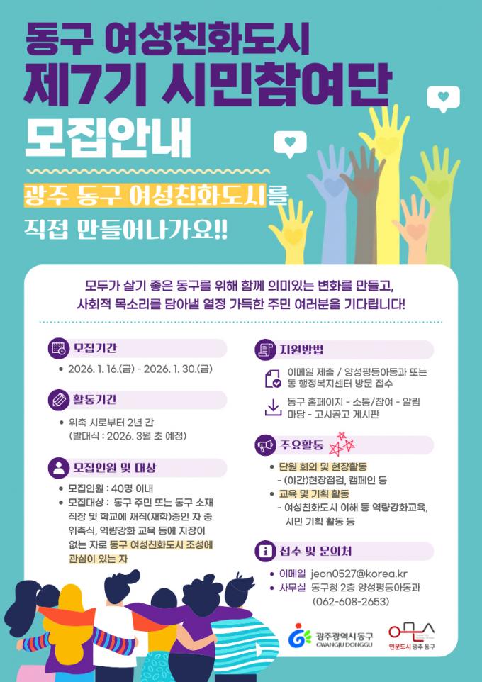 Á¦7±â ¿©¼ºÄ£Èµµ½Ã ½Ã¹ÎÂü¿©´Ü ½ÅûÀº µ¿±¸Ã» ¾ç¼ºÆòµî¾Æµ¿°ú ¶Ç´Â µ¿ ÇàÁ¤º¹Áö¼¾Å͸¦ ÅëÇØ À̸ÞÀÏ¡¤¹æ¹® Á¢¼ö·Î ÇÒ ¼ö ÀÖÀ¸¸ç, ±âŸ ÀÚ¼¼ÇÑ »çÇ×Àº µ¿±¸Ã» ´©¸®Áý °ø°í¹®¿¡¼ È®ÀÎÇÒ ¼ö ÀÖ´Ù.