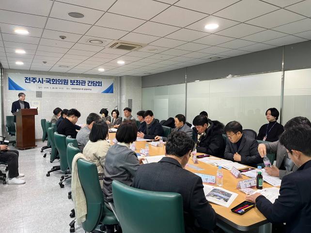 À±µ¿¿í ÀüÁÖ ºÎ½ÃÀåÀº ¡°ÀüÁÖÀÇ ¡®°ÇÑ °æÁ¦¡¯ ±¸ÇöÀ» À§Çؼ´Â ÁÖ¿ä Çö¾È »ç¾÷ÀÇ ¿øÈ°ÇÑ ÃßÁø°ú ±¹°¡ ¿¹»ê È®º¸°¡ ÃÖ¿ì¼±½ÃµÅ¾ß ÇÑ´Ù¡±¸é¼ ¡°À̹ø °£´ãȸ¿¡¼ ³íÀÇµÈ ³»¿ëÀ» ¹ÙÅÁÀ¸·Î Áö¿ª ±¹È¸ÀÇ¿ø½Ç°ú »ó½Ã ¼ÒÅëÇÏ°í ±ä¹ÐÇÏ°Ô Çù·ÂÇØ °¡½ÃÀûÀÎ ¼º°ú¸¦ ³¾ ¼ö ÀÖµµ·Ï ÃÖ¼±À» ´ÙÇϰڴ١±°í ¸»Çß´Ù.