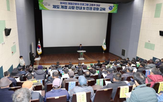 À̳¯ ±³À°Àº À¾¡¤¸é ´ã´çÀÚ¿Í ¿ÃÇØ »ó¹Ý±â °èÀý±Ù·ÎÀÚ °í¿ëÁÖ µî 250¿© ¸íÀÌ Âü¼®ÇÑ °¡¿îµ¥ ÁøÇàµÆ´Ù. ±³À°Àº ¿ÃÇØ »õ·Ó°Ô º¯°æµÈ ¿Ü±¹ÀÎ °èÀý±Ù·ÎÀÚ ÇÁ·Î±×·¥ ÁöħÀ» ³ó°¡¿¡ ½Å¼ÓÈ÷ ÀüÆÄÇÏ°í ±Ù·ÎÀÚÀÇ ÀαÇÀ» º¸È£ÇÏ¿© ¾ÈÁ¤ÀûÀÎ ³óÃÌ Àη ±â¹ÝÀ» ´ÙÁö±â À§ÇØ ¸¶·ÃµÇ¾ú´Ù.
