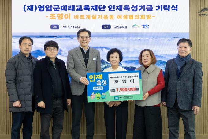 [½Ã»çÁ¾ÇսŹ® = ¿À½ÂÅà ±âÀÚ] ±è¾ç¼± ¹Ù¸¥»ç¹«±â±â ´ëÇ¥¿Í µÎ Àڳడ 100¸¸¿øÀ», Á¶¿µÀÌ ¹Ù¸£°Ô»ì±â¿îµ¿ ¿µ¾Ï±º¿©¼ºÇùÀÇȸÀåÀÌ 150¸¸¿øÀ» 21ÀÏ ¿µ¾Ï±ºÃ»À» ã¾Æ ¿µ¾Ï±º¹Ì·¡±³À°Àç´Ü¿¡ ÀÎÀç À°¼º ±â±ÝÀ¸·Î ±âºÎÇß´Ù.