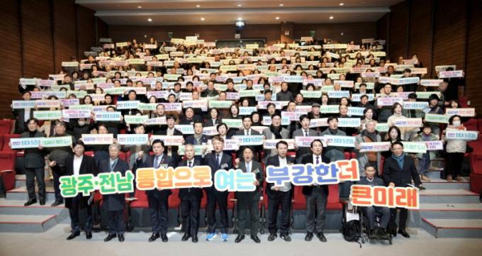 °±âÁ¤ ±¤ÁÖ½ÃÀåÀº ¡°Ã»³âÀÌ ¶°³ªÁö ¾Ê´Â ºÎ°ÇÑ µµ½Ã¸¦ ¸¸µé°Ú´Ù´Â ½Ãµµ¹ÎÀÇ ¿°¿ø°ú ´ëÅë·ÉÀÇ ÀÇÁö, ½ÃµµÁö»ç °á´ÜÀÌ ¸¸³ª ±¤ÁÖÀü³² ´ëÅëÇÕÀ¸·Î ºü¸£°Ô °¡°í ÀÖ´Ù¡±¸ç ¡°¾ÕÀ¸·Îµµ ´Ù¾çÇÑ ¹æ½ÄÀ¸·Î ÅëÇÕ°ú Ưº°¹ý¿¡ ´ëÇØ ÃæºÐÈ÷ µè°í ¼ÒÅëÇϰڴÙ. °øÃ»È¸¸¦ ÅëÇØ Á¦½ÃµÈ ¼ÒÁßÇÑ ÀǰßÀ» ¹ÙÅÁÀ¸·Î ½Ã¹ÎÀÌ °ø°¨ÇÒ ¼ö ÀÖ´Â ÅëÇÕ ¸ðµ¨À» ¸¶·ÃÇϰڴ١±°í ¹àÇû´Ù.