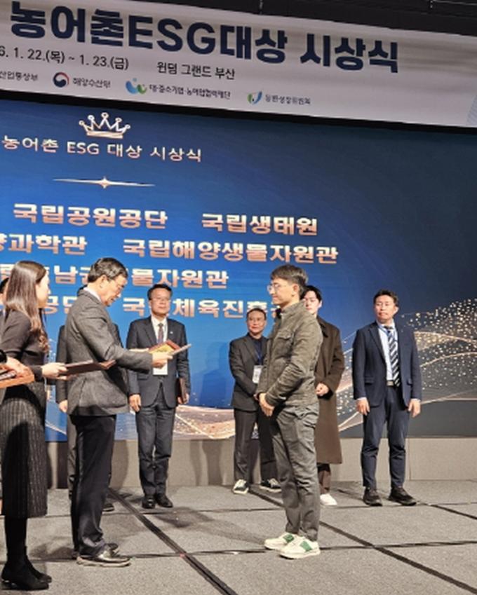 ³ó¾îÃÌ ESG ½ÇõÁ¦µµ´Â ´ë¡¤Áß¼Ò±â¾÷¡¤°ø°ø±â°ü°ú ³ó¾îÃÌ °£ »ó»ýÇù·Â Ȱµ¿À» ESG °üÁ¡¿¡¼ Æò°¡ÇØ ¿ì¼ö ±â¾÷°ú ±â°üÀ» ÀÎÁõÇÏ´Â Á¦µµ·Î, ´ë¡¤Áß¼Ò±â¾÷¡¤³ó¾î¾÷Çù·ÂÀç´ÜÀÌ ÁÖ°üÇØ ¸Å³â ¼±Á¤Çϰí ÀÖ´Ù. ±¹¸³È£³²±Ç»ý¹°ÀÚ¿ø°üÀº Áö¿ª»çȸ¿Í ¿¬°èÇÑ »ý¹°´Ù¾ç¼º º¸Àü Ȱµ¿°ú ÇöÀå Á᫐ Çù·Â ¸ðµ¨À» Áö¼ÓÀûÀ¸·Î ÃßÁøÇØ ¿Â Á¡¿¡¼ ³ôÀº Æò°¡¸¦ ¹Þ¾Ò´Ù.