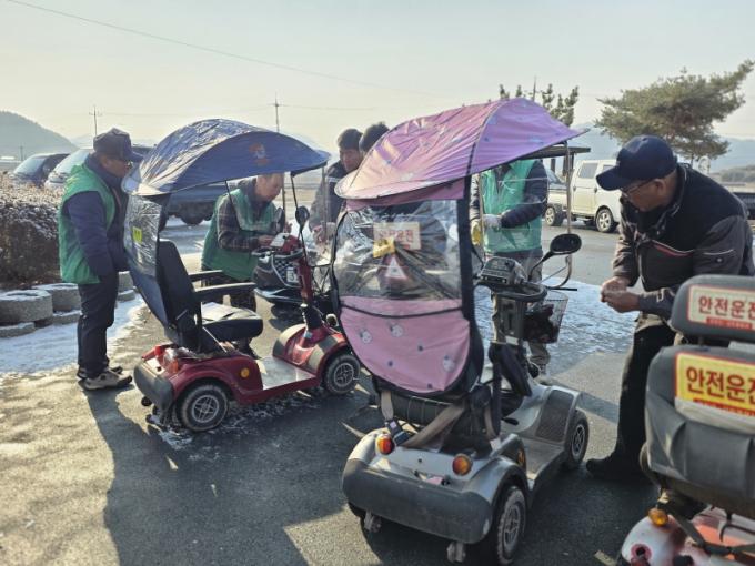 º´¿µ¸é Áö¿ª»çȸº¸ÀåÇùÀÇü(°øµ¿À§¿øÀå ¾çÀºÈñ‧±è¿ë°ü)´Â º´¿µ»õ¸¶À»ÇùÀÇȸ(ȸÀå ¼Û¿Áö)¿Í ÇÔ²² Àüµ¿Â÷¸¦ ÀÌ¿ëÇÏ´Â ¾î¸£½ÅµéÀÇ ¾ÈÀüÇÑ À̵¿À» µ½±â À§ÇØ Àüµ¿Â÷ Â÷¾ç¸· ¼³Ä¡ Áö¿ø»ç¾÷À» ÃßÁøÇß´Ù. À̹ø »ç¾÷Àº Àüµ¿Â÷¸¦ ÀÌ¿ëÇÏ´Â ¾î¸£½Å 45¸íÀ» ´ë»óÀ¸·Î ÁøÇàµÆ´Ù.