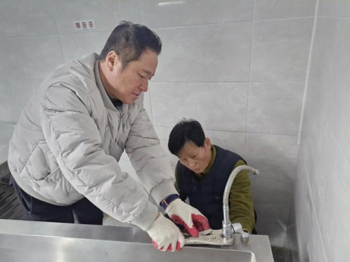 ƯÈ÷ À̹ø Ȱµ¿ÀÇ È¿°ú´Â ÃÖ±Ù °·ÂÇÑ ÇÑÆÄ°¡ À̾îÁö´ø Áö³ÁÖ »çÀü Çб³½Ã¼³ Á¡°ËÀ» ½Ç½ÃÇÏ´ø Áß ¼øÃµºñºÀÀ¯Ä¡¿øÀÇ ÇàÁ¤½Ç ¾Õ ÈÀå½Ç ¼¼¸é´ë°¡ °íÁ¤ ºÒ·®À¸·Î Èçµé¸®°í ¹è¼ö¹è°ü Á¶ÀÓÀÌ Ç®·Á ´©¼ö°¡ ¹ß»ýÇÑ °ÍÀ» È®ÀÎÇØ, ¹è¼ö¹è°üÀ» °ß°íÈ÷ Á¶ÀÌ°í ¼¼¸é´ë ÇϺθ¦ º¸°ÇÏ¿© Èçµé¸² ¾øÀÌ Á¶Ä¡Çß´Ù.