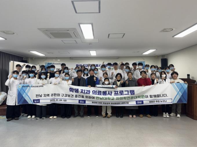 [½Ã»çÁ¾ÇսŹ® = ¿À½ÂÅà ±âÀÚ] Àü³²´ëÇб³ Ä¡ÀÇÇÐÀü¹®´ëÇпøÀº 2026³â 1¿ù 9ÀÏ(±Ý) Àü¶ó³²µµ ¿µ¾Ï±º ¹Ì¾Ï¸é ´ÞÄڹ̸¶À»¿¡¼­ Áö¿ª ÁÖ¹ÎÀ» ´ë»óÀ¸·Î °Ü¿ï Ä¡°úÀÇ·áºÀ»çȰµ¿À» ½Ç½ÃÇß´Ù.