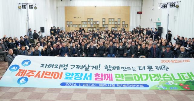 Á¦ÁÖµµ´Â 28ÀÏ Á¦ÁÖ½Ãû Á¦1º°°ü ȸÀǽǿ¡¼ ¡®2026³â µµ¹Î°úÀÇ ´ëÈ¡¯¸¦ ¿°í, Á¦Áֽùεé°ú ¹Î»ý Çö¾È°ú Áö¿ª ¹ßÀü ¹æÇâ, ¹Ì·¡ µµÁ¤ ºñÀü¿¡ ´ëÇØ Á÷Á¢ ¼ÒÅëÇÏ´Â ½Ã°£À» °¡Á³´Ù.