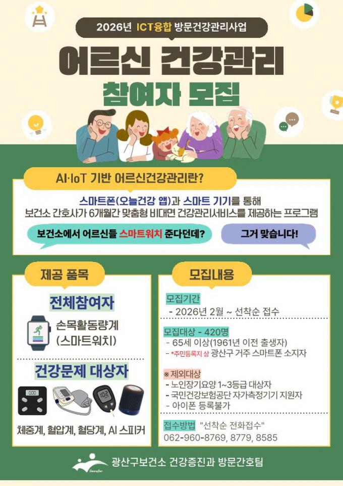 [½Ã»çÁ¾ÇսŹ® = ¿À½ÂÅà ±âÀÚ] ±¤ÁÖ ±¤»ê±¸°¡ 65¼¼ ÀÌ»ó ¾î¸£½ÅÀ» ´ë»óÀ¸·Î ÀΰøÁö´É(AI)¡¤»ç¹°ÀÎÅͳÝ(IoT) ±â¹Ý ¾î¸£½Å °Ç°­°ü¸® »ç¾÷ ½Å±Ô Âü¿©ÀÚ 420¸íÀ» ¼±Âø¼ø ¸ðÁýÇÑ´Ù.