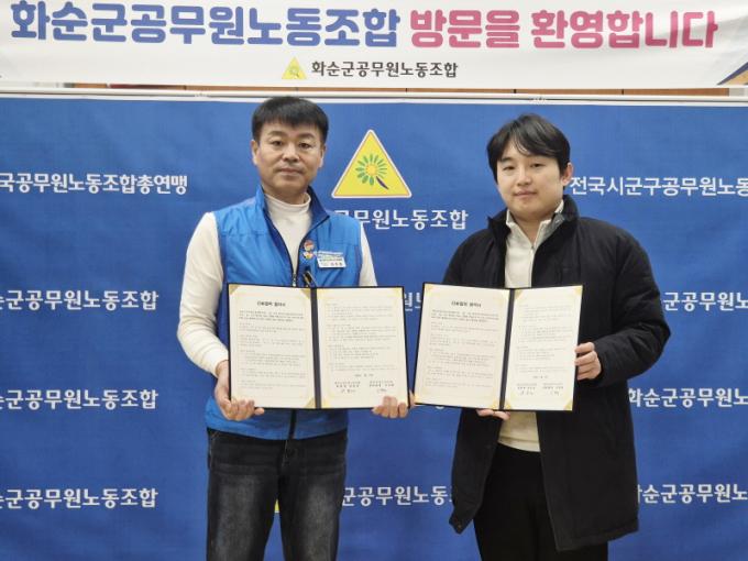 [½Ã»çÁ¾ÇսŹ® = ¿À½ÂÅà ±âÀÚ] È­¼ø±º°ø¹«¿ø³ëµ¿Á¶ÇÕ(À§¿øÀå °­ÁøÈ£)°ú È­¼øÁß¾ÓÄ¡°ú(¿øÀå ÀÌ¿µÃ¶)´Â Áö³­ 27ÀÏ °ø¹«¿ø º¹Áö Çâ»ó°ú Áö¿ª ÀÇ·á±â°ü°úÀÇ »ó»ý Çù·ÂÀ» À§ÇØ ¾÷¹«Çù¾à(MOU)À» ü°áÇß´Ù.