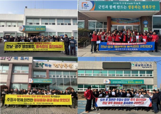 ¹«¾ÈÀ¾ ±â°ü»çȸ´ÜüÇùÀÇȸ µî 7°³ À¾¸é ±â°ü»çȸ´ÜüÇùÀÇȸ Àϵ¿Àº ¡°ÁÖû»ç È®Á¤ ¾ø´Â ÇàÁ¤ÅëÇÕ¿¡´Â µ¿ÀÇÇÒ ¼ö ¾ø´Ù¡±¸ç ¡°Àü¶ó³²µµÃ»À» ÅëÇÕ ±¤¿ªÇàÁ¤ÀÇ ÁÖÃàÀ¸·Î ¸íÈ®È÷ Çϰí, ÁÖû»ç°¡ Àü¶ó³²µµÃ»À¸·Î È®Á¤µÉ ¼ö ÀÖµµ·Ï ³¡±îÁö ³ë·ÂÇϰڴ١±°í ¹àÇû´Ù.
