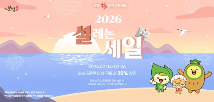 [½Ã»çÁ¾ÇսŹ® = ¿À½ÂÅà ±âÀÚ] º¸¼º±ºÀº ¼³ ¸íÀýÀ» ¸Â¾Æ ¿À´Â 2¿ù 4ÀϺÎÅÍ 3Àϰ£ ³óƯ»ê¹° ¿Â¶óÀÎ ¼îÇθô ¡®º¸¼º¸ô¡¯¿¡¼­ ÃÖ´ë 20% ÇÒÀΰú ´Ù¾çÇÑ Àû¸³ À̺¥Æ®¸¦ °áÇÕÇÑ Æ¯º° ÇÒÀÎ Çà»ç¸¦ ÁøÇàÇÑ´Ù°í ¹àÇû´Ù.