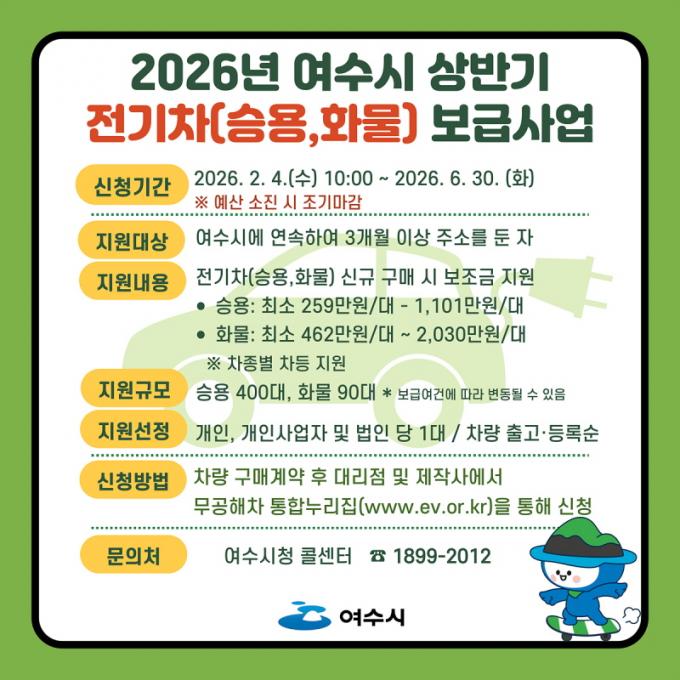 ¿©¼ö½Ã, 2026³â »ó¹Ý±â Àü±âÂ÷ ±¸¸Åº¸Á¶±Ý È®´ë Áö¿ø»ç¾÷ ÃßÁø