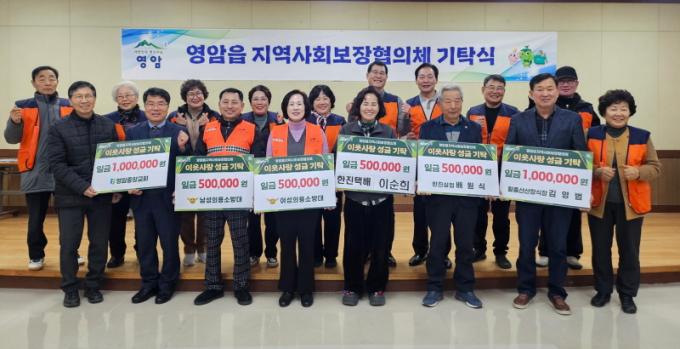 [½Ã»çÁ¾ÇսŹ® = ¿À½ÂÅà ±âÀÚ] ¿µ¾Ï±º ¿µ¾ÏÀ¾Áö¿ª»çȸº¸ÀåÇùÀÇü(°øµ¿À§¿øÀå ±è³²µÎ, ÀüÀÇÈ«)°¡, 29ÀÏ À¾ÇàÁ¤º¹Áö¼¾ÅÍ¿¡¼­ ÀÌ¿ô »ç¶û ¼º±Ý ±âºÎ½ÄÀ» ¿­°í, Áö¿ª ´Üü¡¤°³ÀÎ 7°÷ ÃÑ 450¸¸¿øÀÇ ±âºÎ±ÝÀ» ¸ð±ÝÇß´Ù.