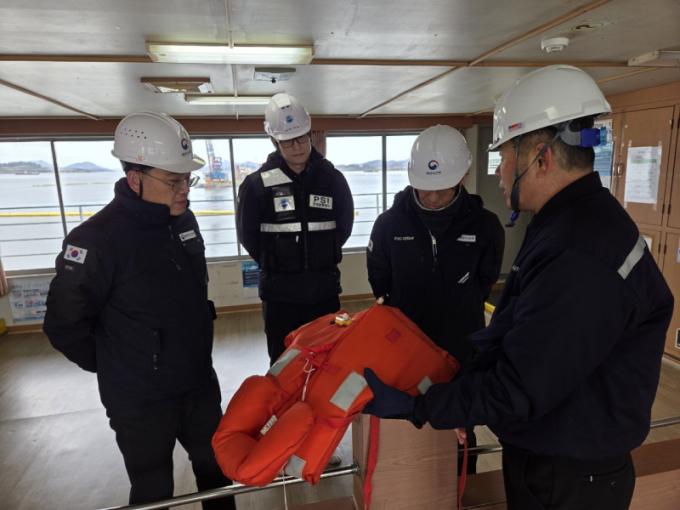 ¿îÇ×°ü¸®ÀÚ¸¦ Áß½ÉÀ¸·Î ÇØ»ç¾ÈÀü°¨µ¶°ü, ÇØ¾ç°æÂû, ¼±¹Ú°Ë»ç´ëÇà±â°ü(KOMSA, KR) °Ë»ç¿ø µîÀÌ Âü¿©ÇÏ´Â ÇÕµ¿Á¡°Ë ¹æ½ÄÀ¸·Î ÁøÇàµÇ¾ú´Ù. ƯÈ÷ Á¡°ËÀÇ ½ÇÈ¿¼º°ú Åõ¸í¼ºÀ» ³ôÀ̱â À§ÇØ °¢ ¼±»çÀÇ ¾ÈÀü°ü¸®Ã¥ÀÓÀÚ¿Í ÇØ´ç ¼±¹ÚÀÇ ¼±Àå ¹× ±â°üÀåÀÌ Á¡°Ë¿¡ ÀÔȸÇÏ¿©, ÇöÀå¿¡¼ Áï½Ã È®ÀΡ¤Á¶Ä¡°¡ °¡´ÉÇϵµ·Ï Çù¾÷ ü°è¸¦ °ÈÇÏ¿´´Ù.