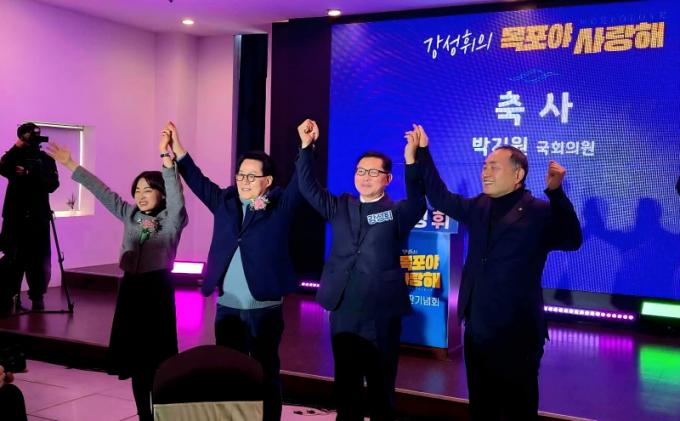 2¿ù 1ÀÏ(ÀÏ) ¿­¸° °­¼ºÈÖÀÇ ¸ñÆ÷¾ß »ç¶ûÇØ ÃâÆÇ±â³äȸ¿¡ Âü¼®ÇÑ ¹ÚÁö¿ø¡¤±è¿øÀÌ¡¤¼­¹ÌÈ­ ±¹È¸ÀÇ¿øÀÌ °­¼ºÈÖ ¸ñÆ÷½ÃÀå Ã⸶¿¹Á¤ÀÚ¿Í ÇÔ²² Àλ縦 Çϰí ÀÖ´Ù.