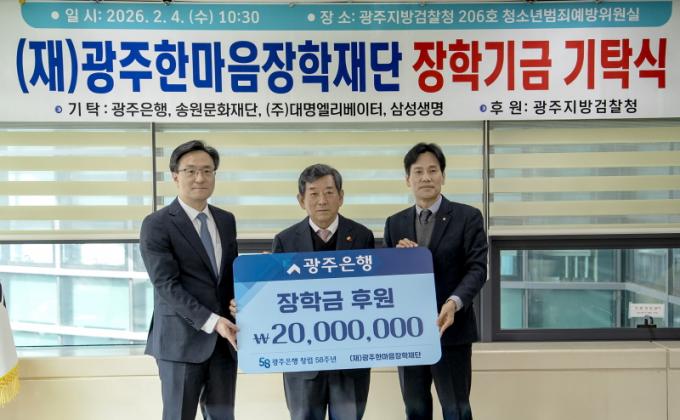 ±¤ÁÖÀºÇàÀº Áö³ 2018³âºÎÅÍ ¸Å³â 2õ¸¸ ¿ø »ó´çÀÇ ÀåÇбÝÀ» Áö¼ÓÀûÀ¸·Î Àü´ÞÇØ¿À°í ÀÖÀ¸¸ç, ¿ÃÇØ±îÁö ´©Àû Áö¿ø±Ý¾×Àº ÃÑ 1¾ï 8õ¸¸ ¿ø¿¡ ´ÞÇÑ´Ù. À̸¦ ÅëÇØ ¾î·Á¿î ȯ°æ ¼Ó¿¡¼µµ Èñ¸ÁÀ» ÀÒÁö ¾Ê°í ²ÞÀ» ÇâÇØ ³ª¾Æ°¡´Â Áö¿ª û¼Ò³âµéÀ» ²ÙÁØÈ÷ ÀÀ¿øÇϰí ÀÖ´Ù.
