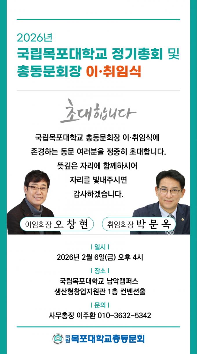 [½Ã»çÁ¾ÇսŹ® = ¿À½ÂÅà ±âÀÚ] ±¹¸³¸ñÆ÷´ëÇб³(ÃÑÀå ¼ÛÇÏö) Ãѵ¿¹®È¸´Â ¿À´Â 2¿ù 6ÀÏ ¿ÀÈÄ 4½Ã, ³²¾ÇÄ·ÆÛ½º ±Û·ÎÄýºÅ¸Æ®¾÷¼¾ÅÍ¿¡¼­ Á¦30¡¤31´ë Ãѵ¿¹®È¸Àå ÀÌ¡¤ÃëÀÓ½ÄÀ» °³ÃÖÇÑ´Ù.