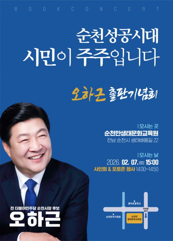 ¿ÀÇϱ٠Àü ´õºÒ¾î¹ÎÁÖ´ç ¼øÃµ½ÃÀå È帴 ¿À´Â 2¿ù 7ÀÏ(Åä) ¿ÀÈÄ 3½Ã, ¼øÃµ¸¸»ýŹ®È±³À°¿ø¿¡¼ ÀÚ½ÅÀÇ Àú¼ ¡®¼øÃµ¼º°ø½Ã´ë, ½Ã¹ÎÀÌ ÁÖÁÖÀÔ´Ï´Ù¡¯¸¦ Å׸¶·Î ÇÑ ºÏÄܼƮ¸¦ °³ÃÖÇÑ´Ù°í ¹àÇû´Ù.