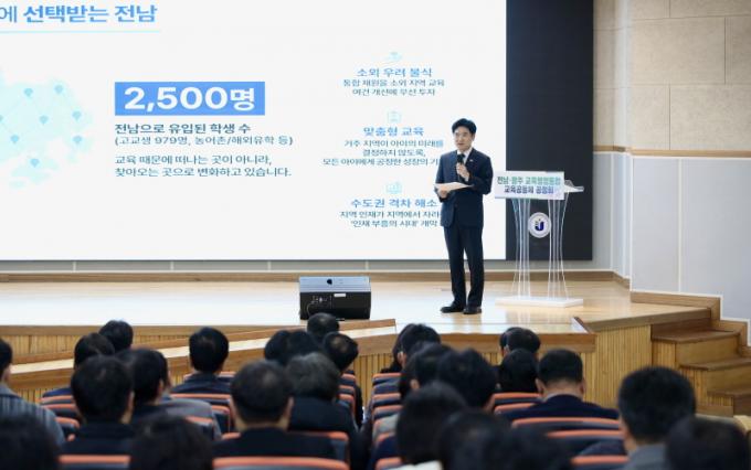 ±è´ëÁß ±³À°°¨Àº ¡°Àü³²¡¤±¤ÁÖ ±³À°ÇàÁ¤ÅëÇÕÀº ´Ü¼øÇÑ ÇàÁ¤ÀÇ °áÇÕÀÌ ¾Æ´Ï¶ó ÇлýÀÇ ¼ºÀå°ú Áö¿ª ±³À°ÀÇ ¹Ì·¡¸¦ ÇÔ²² ¼³°èÇÏ´Â °úÁ¤¡±À̶ó¸ç ¡°±³À°°øµ¿Ã¼ÀÇ ¸ñ¼Ò¸®¸¦ ÃæºÐÈ÷ µè°í ½ÅÁßÇÏ°Ô ³íÀǸ¦ À̾ Áö¿ª ±³À°ÀÇ »õ·Î¿î µµ¾àÀ» ÀÌ·ç°Ú´Ù¡±°í ¸»Çß´Ù.