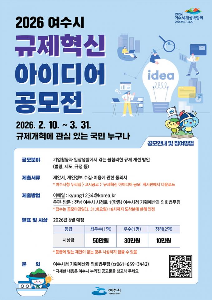 ¿©¼ö½Ã, 2026³â ±ÔÁ¦Çõ½Å ¾ÆÀ̵ð¾î °ø¸ðÀü °³ÃÖ