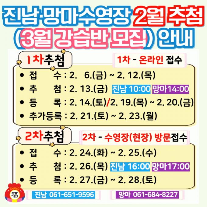 Áø³²¼ö¿µÀå°ú ¸Á¸¶¼ö¿µÀåÀº 2¿ù 12ÀϱîÁö, ¿õõ¼ö¿µÀåÀº 2¿ù 11ÀϱîÁö 3¿ù °­½À¹Ý ¿Â¶óÀÎ Á¢¼ö°¡ °¡´ÉÇϸç, 1Â÷ Ãß÷ ÀÌÈÄ °á¿ø Àοø¿¡ ÇÑÇØ 2Â÷ ¹æ¹® Á¢¼ö ¹× Ãß÷ÀÌ ÁøÇàµÈ´Ù.