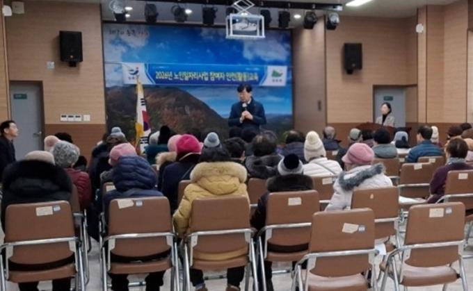 À̳¯ Âü¿©Àڵ鿡°Ô ³ëÀÎÀÏÀÚ¸®»ç¾÷ ¼³¸í ¹× ¾ÈÀü±³À°°ú ±Ù¹«½Ã À¯ÀÇ»çÇ× ¹× ±Ù¹«ÀÏÁ¤ µîÀ» ¾È³»Çß´Ù.