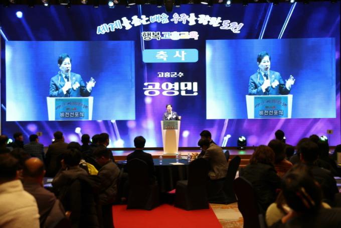 °ø¿µ¹Î ±º¼ö´Â ¡°±³À°Àº Áö¿ªÀÇ Áö¼Ó°¡´É¼ºÀ» Á¿ìÇÏ´Â ÇÙ½É ±â¹ÝÀ¸·Î, Áö³­ÇØ °íÈﱺÀº ±³À°¹ßÀüƯ±¸ ½Ã¹üÁö¿ªÀ¸·Î ¼±Á¤µÅ °ø±³À° Áö¿ø°ú µ¹º½ È®´ë, »êÇÐ ¿¬°è ±³À°, Á¤ÁÖ ¿©°Ç °³¼±À» ±³À°Ã»¡¤´ëÇС¤Áö¿ª»çȸ¿Í ÇÔ²² ÃßÁøÇϰí ÀÖ´Ù¡±¸ç ¡°°íÈï¿¡¼­ ¹è¿ì°í ¹Ì·¡¸¦ ²Þ²Ü ¼ö ÀÖ´Â ÁÁÀº ±³À°È¯°æÀ» ¸¸µé¾î °¡°Ú´Ù¡±°í ¸»Çß´Ù.