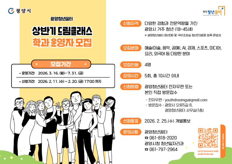 ±¤¾çû³â²ÞÅÍ´Â ÀÌ·¯ÇÑ °á°ú¸¦ ¹Ý¿µÇØ Ã»³âÀÌ ½ÇÁ¦·Î ¿øÇÏ´Â ÁÖÁ¦¸¦ Áß½ÉÀ¸·Î µå¸²Å¬·¡½º¸¦ ¿î¿µÇÒ °èȹÀÌ´Ù. °»ç·Î Âü¿©Çϴ û³âÀº ±âȹÀÚÀÌÀÚ ¿î¿µÀڷμ ÀÚ½ÅÀÇ °æÇèÀ» °øÀ¯Çϰí, ¼ö° û³âÀº ¹è¿ò°ú Èú¸µÀ» ÇÔ²² ´©¸®¸ç ÀÚ¿¬½º·´°Ô ±³·ùÀÇ ÆøÀ» ³ÐÈ÷°Ô µÈ´Ù.