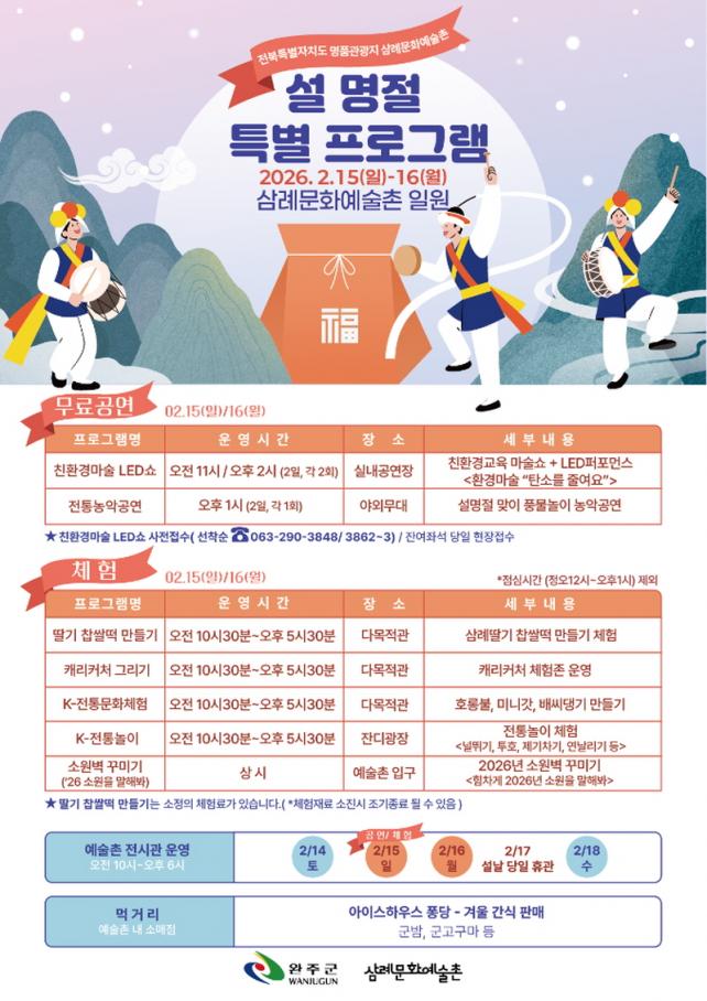 À¯ÈñÅ ¿ÏÁÖ±º¼ö´Â ¡°À̹ø ¼³ ¸íÀý Ưº° ÇÁ·Î±×·¥Àº ÀüÅëÀÇ Áñ°Å¿ò°ú üÇèÇü ÄÜÅÙÃ÷¸¦ °áÇÕÇØ »ï·Ê¹®È¿¹¼úÃÌÀÌ ¸Ó¹«¸£¸ç Áñ±â´Â ü·ùÇü ¹®È°ø°£À¸·Î ÀÚ¸®¸Å±èÇÏ´Â °è±â°¡ µÉ °Í¡±À̶ó¸ç ¡°¼³ ¸íÀý ¿¬ÈÞ µ¿¾È °¡Á·°ú ÇÔ²² µû¶æÇÑ ¹®È ½Ã°£À» º¸³»½Ã±æ ¹Ù¶õ´Ù¡±°í ÀüÇß´Ù.