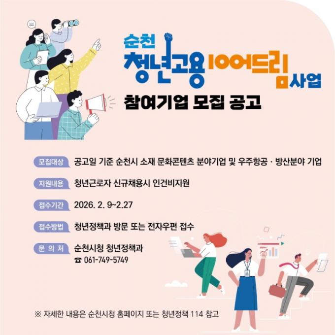 Áö¿ø ÀοøÀº ÃÑ 85¸íÀ¸·Î ¸ðÁý ±â°£Àº 2¿ù 9ÀϺÎÅÍ 27ÀϱîÁöÀ̸ç, ÀÚ¼¼ÇÑ »çÇ×Àº ¼øÃµ½Ãû ´©¸®Áý ¶Ç´Â û³âÁ¤Ã¥114 ȨÆäÀÌÁö¸¦ Âü°íÇϰųª ¼øÃµ½Ãû û³âÁ¤Ã¥°ú û³âÀÏÀÚ¸®ÆÀ (061-749-5749)À¸·Î ¹®ÀÇÇÏ¸é µÈ´Ù.