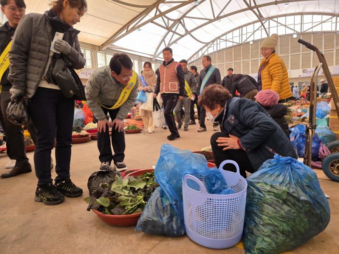 Âü¿©ÀÚµéÀº ½ÃÀå Á¡Æ÷¸¦ ¹æ¹®ÇØ Á¦¼ö¿ëǰ°ú ¸íÀý ¼±¹° µîÀ» ±¸¸ÅÇϰí, ½ÃÀå °÷°÷À» µÑ·¯º¸¸ç »óÀεéÀÇ ¾Ö·Î»çÇ×À» ûÃëÇÏ°í ¸íÀý Áغñ·Î ºÐÁÖÇÑ ÇöÀåÀ» °Ý·ÁÇß´Ù. ƯÈ÷ °ø¹«¿øÀÌ ¸ÕÀú Âü¿©ÇØ ¡®ÀüÅë½ÃÀå ÀÌ¿ëÀÇ ³¯¡¯ ÃëÁö¿¡ ¸Â°Ô °øÁ÷»çȸ°¡ ¾ÕÀå¼´Â ¸ð½ÀÀ» º¸¿´´Ù.