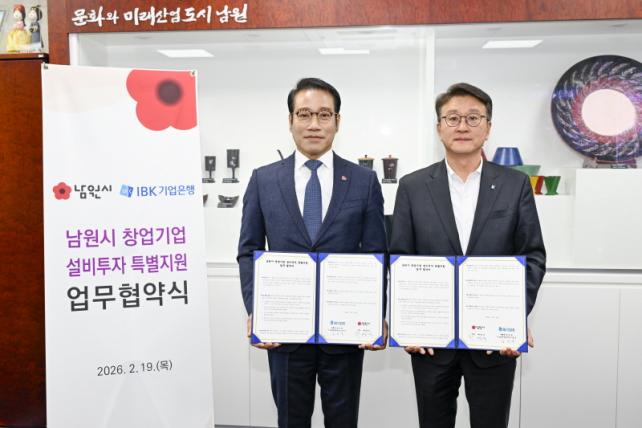 ½Ã´Â 2¿ù 19ÀÏ ÃÖ°æ½Ä ³²¿ø½ÃÀå, ±è¿µ¿í IBK±â¾÷ÀºÇà È£³²Áö¿ªº»ºÎÀå, ±èµ¿ÈÆ Áß¼Ò±â¾÷ÀÎȸÀå µîÀÌ Âü¼®ÇÑ °¡¿îµ¥ ¡¸³²¿ø½Ã â¾÷±â¾÷ ¼³ºñÅõÀÚ Æ¯º°Áö¿ø ¾÷¹«Çù¾à¡¹À» ü°áÇß´Ù.