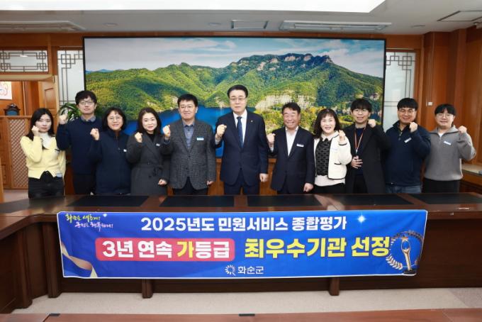 [½Ã»çÁ¾ÇսŹ® = ¿À½ÂÅà ±âÀÚ] È­¼ø±º(±º¼ö ±¸º¹±Ô)Àº 19ÀÏ ÇàÁ¤¾ÈÀüºÎ¿Í ±¹¹Î±ÇÀÍÀ§¿øÈ¸°¡ °øµ¿ ÁÖ°üÇÑ ¡®2025³â ¹Î¿ø¼­ºñ½º Á¾ÇÕÆò°¡¡¯¿¡¼­ ÃÖ¿ì¼ö µî±ÞÀÎ ¡®°¡¡¯ µî±ÞÀ» ¹Þ¾Æ 3³â ¿¬¼Ó ÃÖ¿ì¼ö±â°üÀ¸·Î ¼±Á¤µÆ´Ù°í ¹àÇû´Ù.