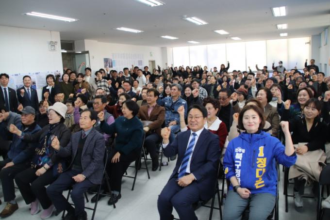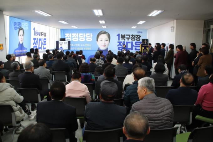 Á¤´ÙÀº ºÏ±¸Ã»Àå ¿¹ºñÈ帴 ¡°°³¼Ò½Ä¿¡ Âü¼®ÇØÁֽЏðµç ºÐµéÀÇ ¹ÏÀ½°ú »ç¶ûÀ» °¡½¿¿¡ ´ã°í ¿ë±âÀÖ´Â ¼±Åÿ¡ ¹Ýµå½Ã ½Â¸®·Î º¸´äÇϰڴ١±¸ç ¡°±¤ÁÖÆ¯º°½Ã ´ëÇ¥µµ½Ã ºÏ±¸¿¡ °¡Àå Àû±ØÀûÀÎ º¯È­¸¦ À̲ø¾î ³»°Ú´Ù¡±°í ¸»Çß´Ù.