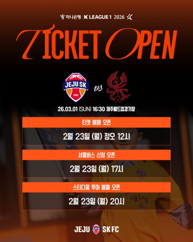 ±â´Ù¸²Àº ³¡³µ´Ù. Á¦Áִ Ȩ °³¸·ÀüÀ» ¸Â¾Æ ƼÄÏ ¿¹¸Å¸¦ ¿ÀÇÂÇÑ´Ù. 2¿ù 23ÀÏ(¿ù) Á¤¿À 12½ÃºÎÅÍ Æ¼ÄÏ ¿¹¸Å°¡ °¡´ÉÇÏ´Ù. ¿Â¶óÀÎ ¿¹¸Å´Â Á¦ÁÖSK FC ȨÆäÀÌÁö/AAP ³»¿¡ ¿¹¸Å/°ü¶÷-¿¹¸ÅÇϱâ-Á¤±Ô¸®±× ¼øÀ¸·Î À̵¿ÇÏ¸é µÈ´Ù. ÇöÀ忹¸Å´Â °æ±â½ÃÀÛ 2½Ã°£ ÀüºÎÅÍ ÈĹÝÀü ½ÃÀÛ±îÁö °¡´ÉÇÏ´Ù.