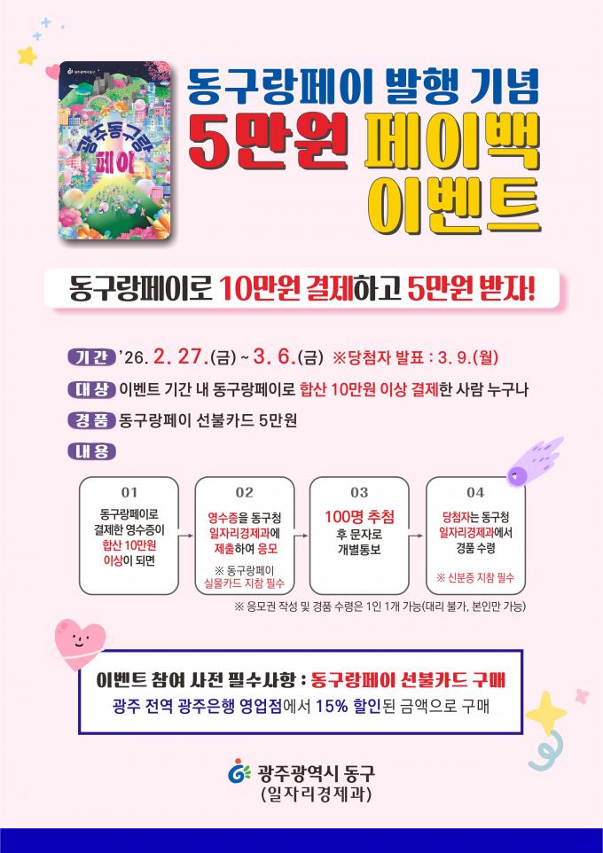 [½Ã»çÁ¾ÇսŹ® = ¿À½ÂÅà ±âÀÚ] ±¤ÁÖ µ¿±¸´Â Áö¿ª»ó±Ç Ȱ¼ºÈ­¿Í ¼Òºñ ÃËÁøÀ» À§ÇØ µ¿±¸ Áö¿ª»ç¶û»óǰ±Ç ¡®±¤ÁÖ µ¿±¸¶ûÆäÀÌ¡¯ ¹ßÇàÀ» ±â³äÇÑ 5¸¸ ¿ø ÆäÀ̹é À̺¥Æ®¸¦ ÃßÁøÇÑ´Ù°í ¹àÇû´Ù.