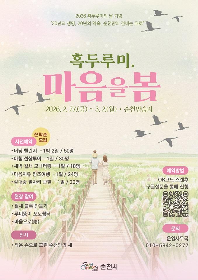 2026 ¼øÃµ¸¸ ÈæµÎ·ç¹ÌÀÇ ³¯ ±â³ä, ¼øÃµ¸¸ Ä¡À¯ ŽÁ¶ üÇèÇÁ·Î±×·¥ ¿î¿µ