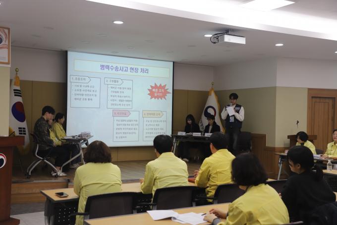 ±¤ÁÖ¡¤Àü³²Áö¹æº´¹«Ã» °ü°èÀÚ´Â ¡®À̹ø ¿¬½ÀÀ» ÅëÇØ »ç°í ÇöÀå¿¡¼ÀÇ À§±â´ëÀÀ ´É·ÂÀ» ¹è¾çÇϰí, À§±â ´ëÀÀ ¸Å´º¾óÀ» Áö¼ÓÀûÀ¸·Î º¸¿ÏÇØ ¾ÈÀüÇÑ ¼ö¼ÛÀÌ ÀÌ·ç¾îÁú ¼ö ÀÖµµ·Ï ÃÖ¼±À» ´Ù Çϰڴ١¯°í ¸»Çß´Ù.