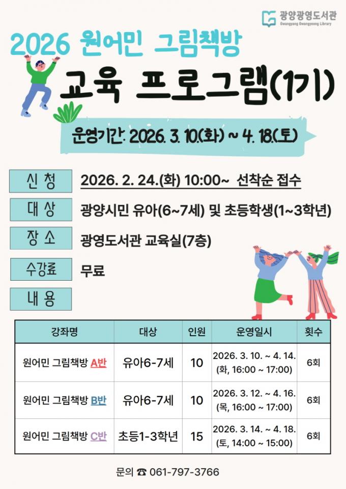 [½Ã»çÁ¾ÇսŹ® = ¿À½ÂÅà ±âÀÚ] ±¤¾ç±¤¿µµµ¼­°üÀº ¿À´Â 3¿ù 10ÀϺÎÅÍ 9¿ù 12ÀϱîÁö À¯¾Æ ¹× Ãʵî ÀúÇгâÀ» ´ë»óÀ¸·Î ¡¸2026³â ¿ø¾î¹Î ±×¸²Ã¥¹æ¡¹À» ¿î¿µÇÑ´Ù.