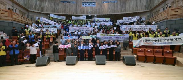 °íⱺ¼ö, °íⱺÀÇȸ ±ºÀÇÀå, °íⱺÁö¿ª»çȸº¸ÀåÇùÀÇü À§¿ø µî 400¿©¸íÀÌ Âü¼®Çß´Ù. °íⱺ Áö¿ª»çȸº¸ÀåÇùÀÇü°¡ ÁÖ°üÇÑ À̹ø Çà»ç´Â Áö¿ª °øµ¿Ã¼ÀÇ ÇÙ½ÉÃàÀÎ ÇùÀÇü À§¿øµéÀÇ Àü¹®¼ºÀ» ³ôÀ̰í, »õ·Ó°Ô ±¸¼ºÇÑ À§¿øµéÀÇ ÀÚ±à½ÉÀ» °íÃëÇϱâ À§ÇØ ¸¶·ÃµÆ´Ù.