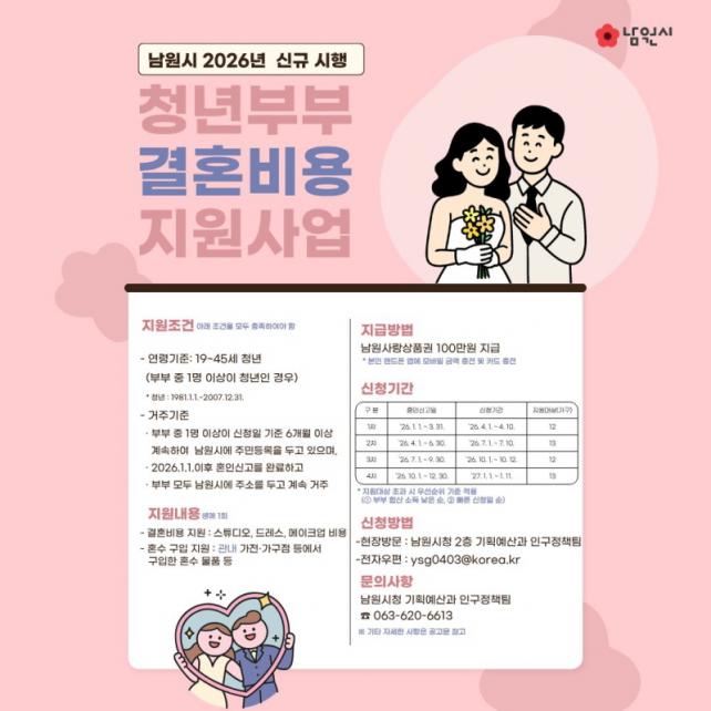 [½Ã»çÁ¾ÇսŹ® = ¿À½ÂÅà ±âÀÚ] ³²¿ø½Ã°¡ û³âµéÀÇ °áÈ¥ Ãʱ⠰æÁ¦Àû ºÎ´ãÀ» ÁÙÀ̰í Áö¿ª Á¤ÂøÀ» µ½±â À§ÇØ ¡®Ã»³âºÎºÎ °áÈ¥ºñ¿ë Áö¿ø»ç¾÷¡¯À» ¿ÃÇØ óÀ½À¸·Î ½ÃÇàÇÑ´Ù.