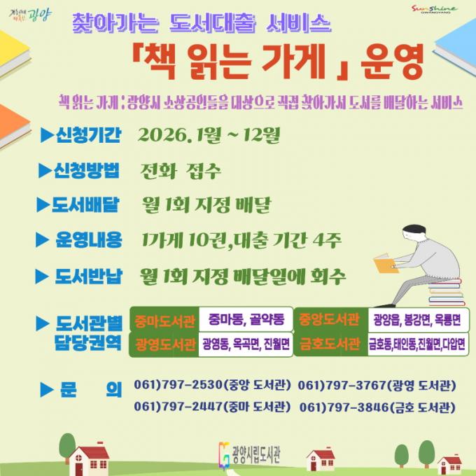 ¡®Ã¥ Àд °¡°Ô¡¯´Â Áö¿ª ³» Ä«Æä¡¤¼Á¡¡¤¹Ì¿ë½Ç µî 2ÀÎ ÀÌÇÏ ¼Ò±Ô¸ð »óÁ¡ ¿î¿µÀÚ¸¦ ºñ·ÔÇÑ ¼Ò»ó°øÀÎÀ» À§ÇØ µµ¼°üÀÌ Á÷Á¢ »ç¾÷ÀåÀ» ¹æ¹®ÇØ µµ¼¸¦ ¹è´ÞÇÏ´Â ¼ºñ½º·Î, 2016³âºÎÅÍ ½Ã¹ÎÀÌ ÀÏ»ó ¼Ó¿¡¼ ÀÚ¿¬½º·´°Ô Ã¥À» Á¢ÇÒ ¼ö ÀÖµµ·Ï ±âȹ¡¤¿î¿µÇØ ¿À°í ÀÖ´Ù.