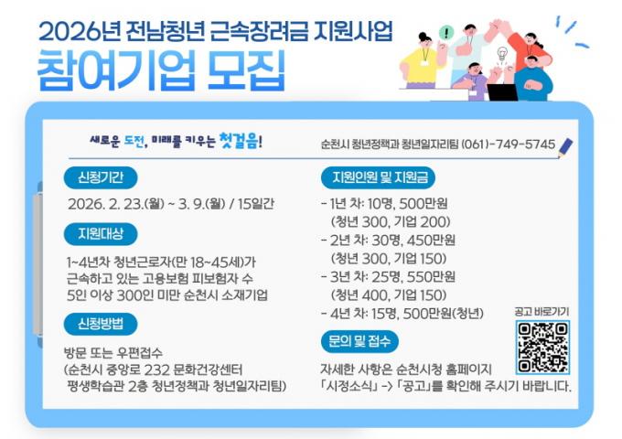 ÀÚ¼¼ÇÑ »çÇ×Àº ¼øÃµ½Ãû ´©¸®Áý [½ÃÁ¤¼Ò½Ä]¿¡¼ [°í½Ã/°ø°í] ¹× [û³âÁ¤Ã¥ 114 ȨÆäÀÌÁö »õ¼Ò½Ä]À» Âü°íÇϰųª, ¼øÃµ½Ãû û³âÁ¤Ã¥°ú û³âÀÏÀÚ¸®ÆÀ(061-749-5745)À¸·Î ¹®ÀÇÇÏ¸é µÈ´Ù.